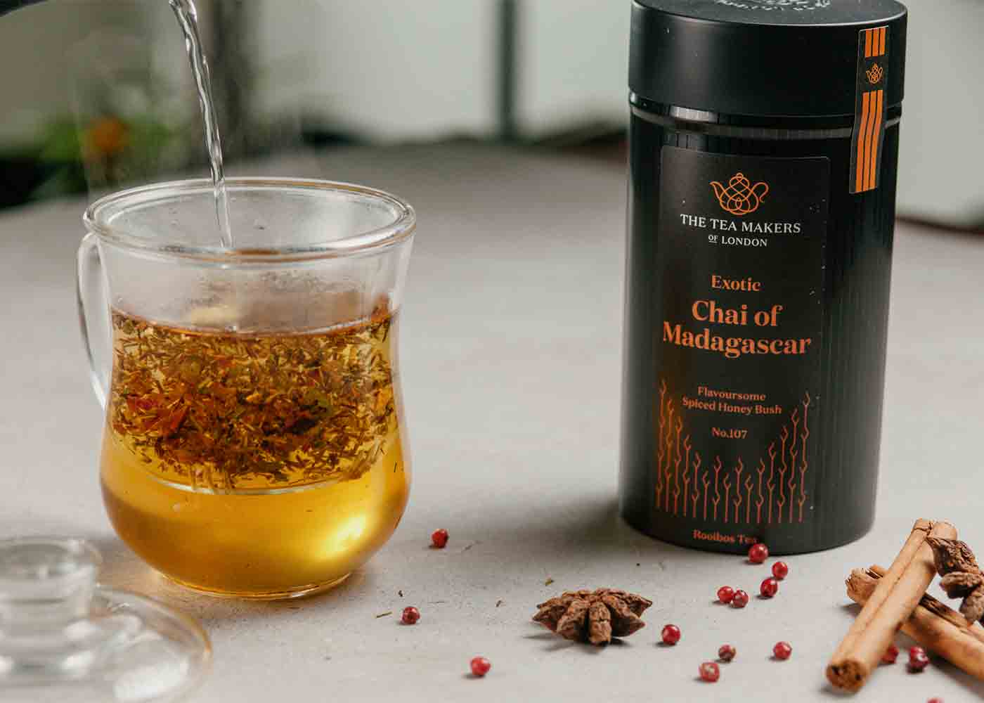 We also have our Chai of Madagascar; a delightful herbal takes on Indian Chai, incorporating traditional spices such as cinnamon, ginger, cardamom and cloves for herbal chai.
